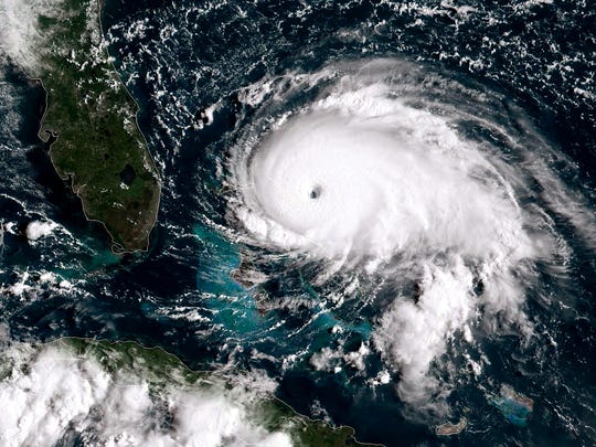 ATLANTIC OCEAN – SEPTEMBER 1: In this NOAA GOES-East satellite handout image, Hurricane Dorian, now a Cat. 5 storm, tracks towards the Florida coast taken at 13:20Z September 1, 2019 in the Atlantic Ocean. A hurricane warning is in effect for much of the northwestern Bahamas as it gets hit with 175 mph winds. According to the National Hurricane Center Dorian is predicted to hit the U.S. as a Category 4 storm. (Photo by NOAA via Getty Images) (Photo: Getty Images)